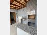 Área de serviço e lazer com churrasquira a carvão e pia