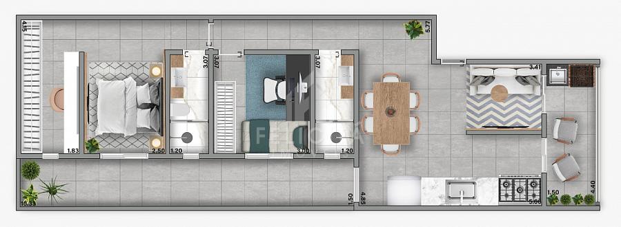 2 dormitórios (1 suíte)